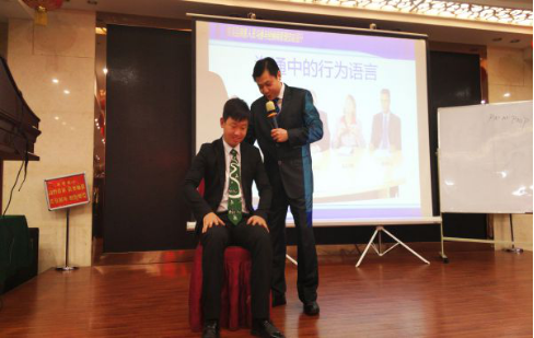 江老师还邀请了学员上台扮演老板。以销售人员与老板之间的对话为例,给大家讲解了沟通中的行为语言技巧,阐述开发当中如何与客户进行沟通。如:用案例说服,使用材料证明,示范等。在场无不报以热烈掌声表示认同。